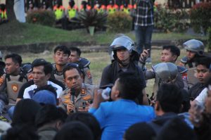 Aksi yang semula diperkirakan diikuti sekitar seribu orang berhasil direduksi menjadi tiga ratus orang sehingga kegiatan berlangsung tertib, aman, dan terkendali hingga pukul 18.00 WIB.