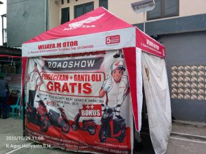 Program tersebut disambut antusias oleh warga sekitar yang datang membawa sepeda motornya dari tahun 2020 sampai tahun 2023 tipe vario,beat,scoopy & genio untuk mendapatkan layanan ganti oli gratis dari team teknisi Honda.