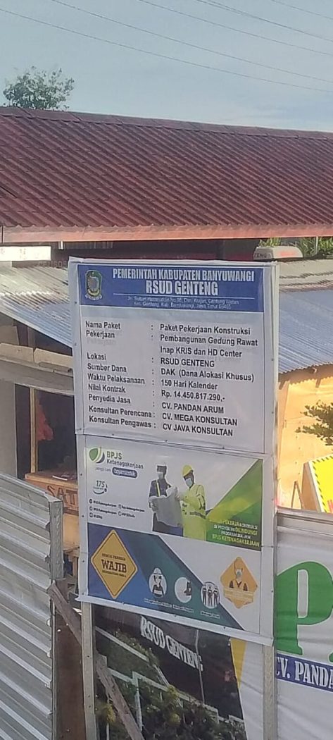 Adapun untuk potensi proyek tidak selesai lainnya adalah proyek pembangunan gedung rawat inap RSUD Genteng. Sebab hingga hampir pertengahan Nopember ini proyek masih berjalan belum mencapai 90%.