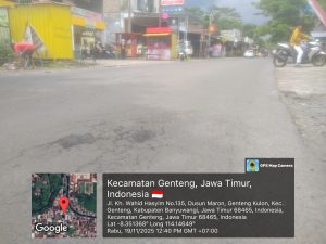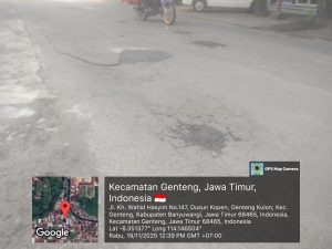 Lokasi jalan yang berada di Jl. KH. Wahid Hasyim, Dusun Maron, Genteng Kulon tersebut terlihat mengalami kerusakan yang cukup mengganggu aktivitas pengguna jalan.