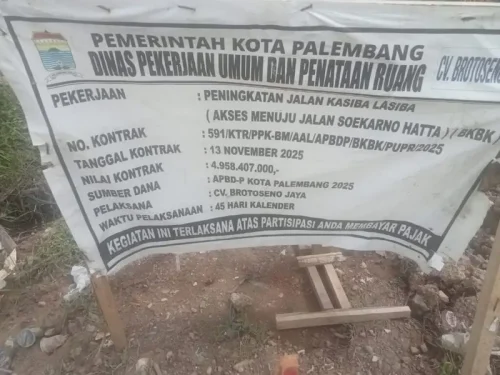 Proyek yang berada di bawah tanggung jawab Dinas PUPR Kota Palembang ini dilaksanakan oleh CV Brotoseno Jaya, dengan nilai kontrak Rp4.958.407.000 yang bersumber dari APBD-P Kota Palembang Tahun Anggaran 2025. Lokasi pekerjaan berada di Jalan Kasiba–Lasiba, akses menuju Jalan Soekarno-Hatta, Kecamatan Alang-Alang Lebar.