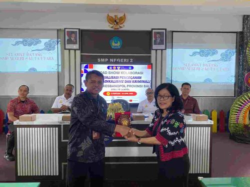 BR-V # Badung – Bali || Jumat, 13 Februari 2026 bertempat di Aula Lantai III SMP Negeri 2 Kuta Utara, Kelurahan Dalung, Kecamatan Kuta Utara, Kabupaten Badung, telah dilaksanakan kegiatan Sosialisasi Pencegahan Paparan Radikalisme dan Kriminalitas.Kegiatan ini dibuka secara resmi oleh Sekretaris Badan Kesatuan Bangsa dan Politik Provinsi Bali (Kesbangpol Bali), Ida Ayu Made Tantri Ardani dan dihadiri oleh Kabid Kewaspadaan Daerah dan Penanganan Konflik Sosial Badan Kesbangpol Kabupaten Badung, Kabid SMP Dinas Pendidikan, Kepemudaan dan Olahraga Kabupaten Badung, Wakil Ketua Komisi Perlindungan Anak Daerah Provinsi Bali, perwakilan Satgaswil Bali Densus 88 AT Polri, serta sekitar 200 siswa-siswi peserta sosialisasi.