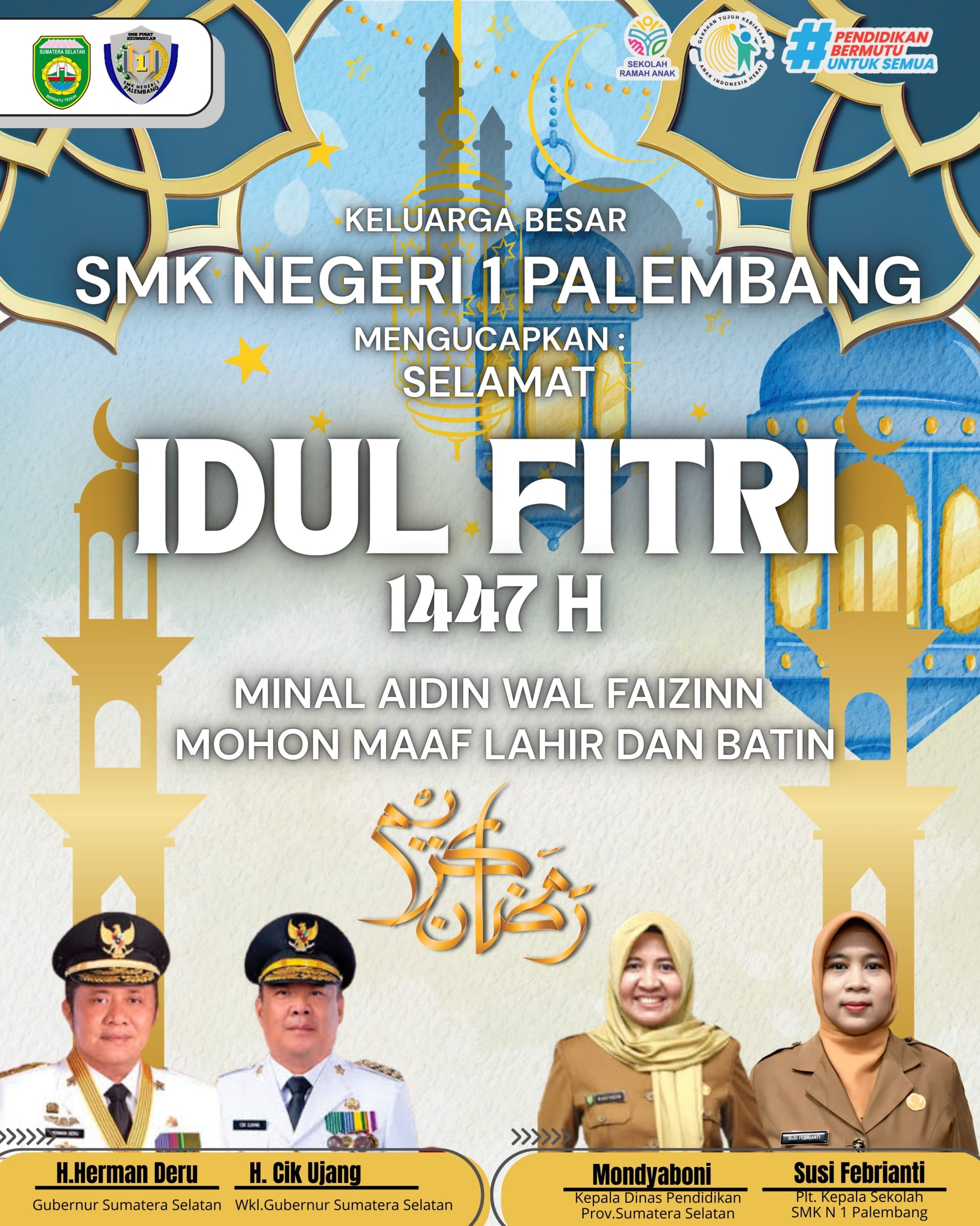 SMK NEGERI 1 PALEMBANG Mengucapkan Selamat Hari Raya Idul Fitri 1447 Hijriah