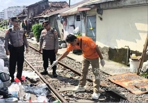 Brv.com||Surabaya – Insiden kecelakaan tragis terjadi di jalur rel kereta api kawasan Kemayoran Baru, Surabaya, Rabu pagi (25/3/2026) sekitar pukul 08.00 WIB. Seorang warga bernama Roepijono (23) dilaporkan terseret kereta api barang hingga mengalami luka serius.