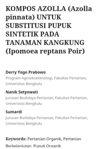 Selain itu, penggunaan kompos ini juga sangat mendukung konsep pertanian organik yang saat ini sedang gencar digalakkan. Bahan bakunya mudah didapatkan dari alam sekitar sehingga biaya produksinya relatif murah dan bisa dibuat sendiri oleh petani. Jika penelitian ini berhasil dibuktikan secara teknis dan aplikatif maka pupuk alternatif ini bisa menjadi solusi cerdas untuk mengurangi biaya produksi pertanian sekaligus menjaga kelestarian lingkungan hidup.