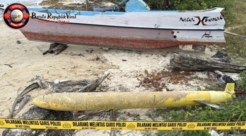 BR-V || Sumenep – Warga Dusun Aenglombi, Desa Torjek, Kecamatan Kangayan, Pulau Kangean, Kabupaten Sumenep, Jawa Timur, digegerkan dengan penemuan benda asing yang diduga torpedo, Senin (20/4/2026) sekitar pukul 14.40 WIB.