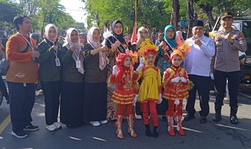 Acara pawai TK dibuka oleh Bunda Paud Kabupaten Sampang Hj. Evi Slamet Junaidi bersama jajaran Kabid TK Kabupaten Sampang, Camat Sampang dan Polsek Sampang
