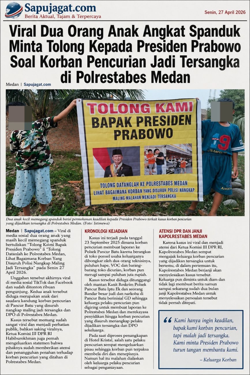 Posted inDaerah Hukum Kriminal TNI-POLRI Viral Sekretaris Kabinet Letkol Teddy Dikabarkan Respon dan Janji Sampaikan Kepada Presiden, Keluarga Yang Disuruh Nangkap Maling Jadi Tersangka Ucapkan Terimakasih Posted by By Roy Mansyahputra NST Maret 22, 2026 Beritarepublikviral.com Medan - Sekertaris Kabinet, Letkol Teddy Indra Wijaya dikabarkan merespon penderitaan warga kota Medan-…